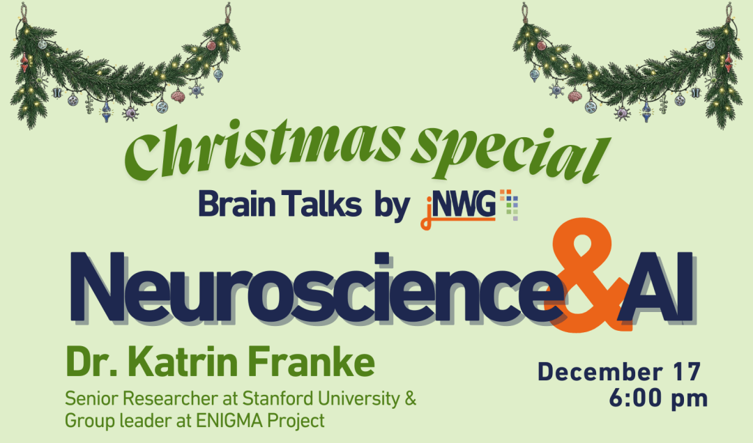 jNWG is excited to invite you to our 3rd Christmas event, starting our upcoming web series: BrainTalks by jNWG. We're delighted to introduce our guest speaker, Dr. Georg Keller, from the Friedrich Miescher Institute for Biomedical Research. "Predictive Processing: A Circuit Approach to Psychosis" Thursday, December 7th 2023 6 pm Dr Keller will share … Continue reading Join us for the annual jNWG Christmas Event with Dr. Georg Keller on Zoom!